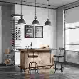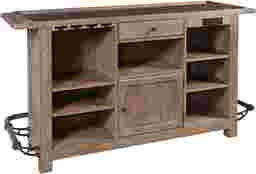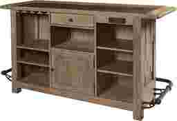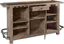 Get the party started with this exquisitely-designed Berkman bar, it's the perfect combination of country style in the front and storage-packed business in the back. A rail-style footrest wraps around the outside of the bar, giving your visitors a comfortable place to socialize and enjoy their favorite drink. A smooth bluestone top adds a touch of elegance. Step around the back to find a convenient power center. The left side of the bar back features open storage with two adjustable shelves and a stemware rack overhead. The right side features two more adjustable shelves with the power center positioned above. The center top drawer is ideal for storing mixology must-haves. A bottom central cabinet is perfect for storing your favorite bottles between events. Customer assembly is required.