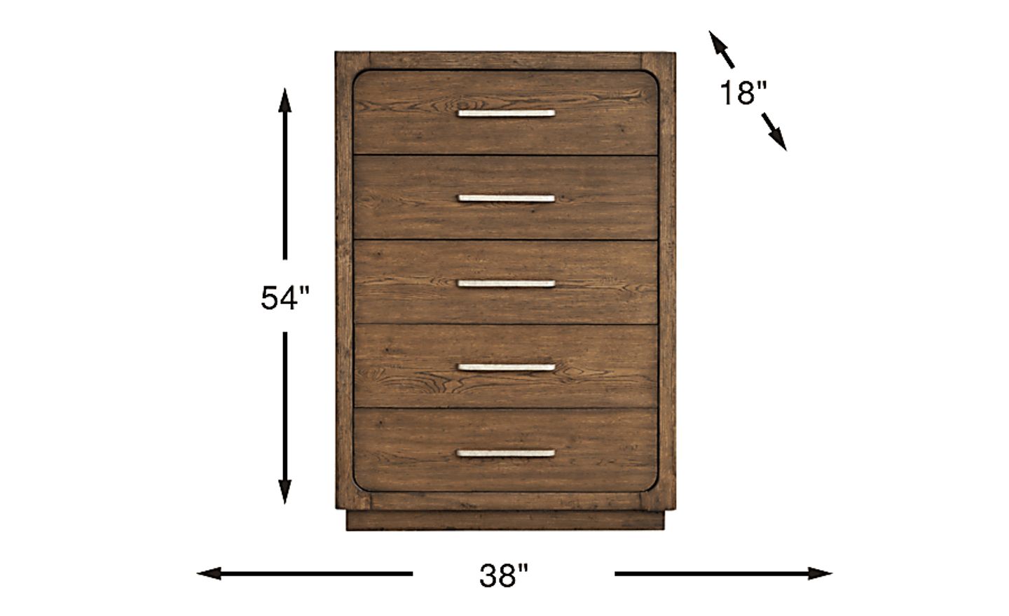 Highlighting form and function with a hint of throwback design sensibilities to the 50s and 60s, the handsome Berkview Place chest gives every day a stylish, confident start. Oak veneers in a rich brown finish feature natural woodgrain, and the sides feature recessed panel details to invite the eye. The five drawers of this piece are cut to a gentle curve, creating an understatedly retro look. Metal bar pulls in an aged pewter finish contrast with the brown finish, making it easy to see and open your drawers. The base, styled to look like a plinth, gives a solid and stable appearance.