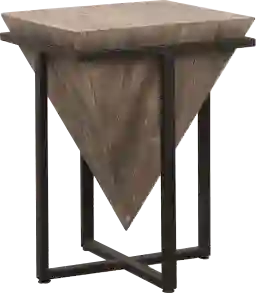 The Berlinwood accent table is made of an upside down pyramid constructed from aged fir wood. Finished in a heavy hand applied gray wash, nestled into an iron base finished in aged black. Customer assembly is required.