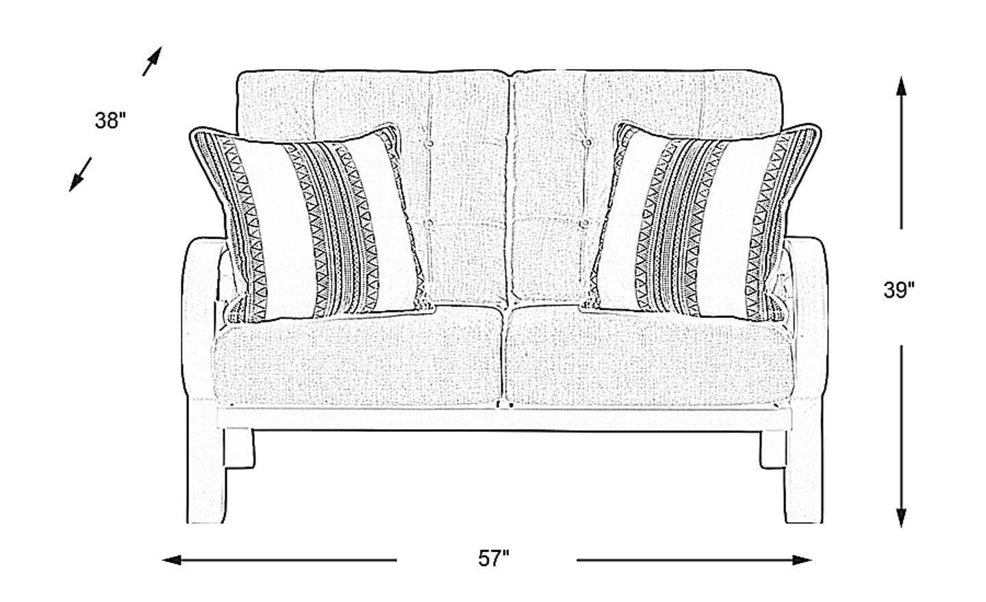 Enjoy beautiful weather with a friend by pairing up on the Bermuda Bay loveseat. The loveseat with graceful, curled arms, has room for two thanks to twin back cushions with tufted button detailing and cozy seat cushions with French seaming. Its ink-colored fabric resists fading and is mold and mildew resistant for long lasting durability. Additional longevity is provided by the slat back loveseat's aluminum frame in a rust resistant all-weather powder coat finish using a hand applied aged bronze finished UV protected top coat. Two accent pillows add a colorful finishing touch.