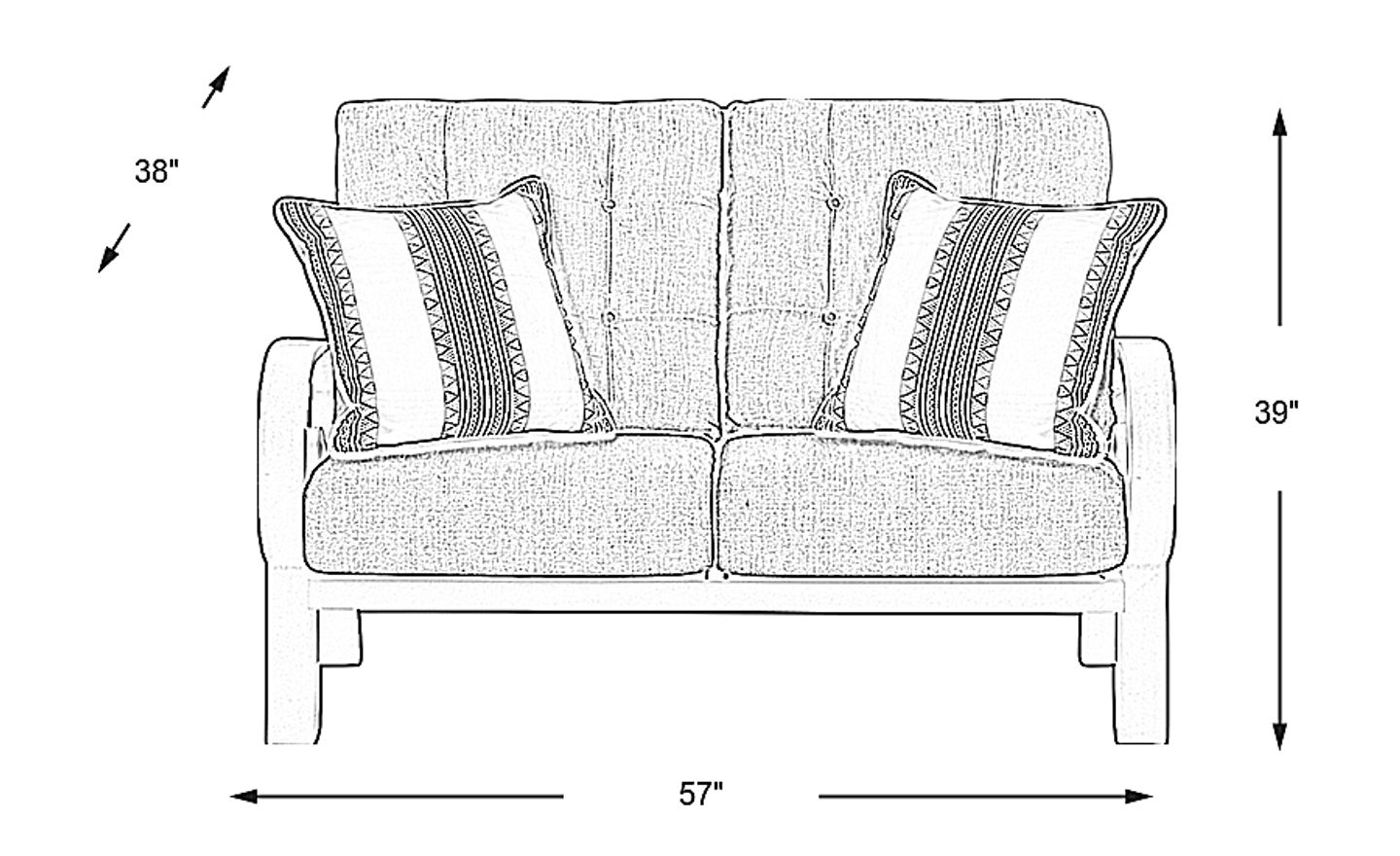 Enjoy beautiful weather with a friend by pairing up on the Bermuda Bay loveseat. The loveseat with graceful, curled arms, has room for two thanks to twin back cushions with tufted button detailing and cozy seat cushions with French seaming. Its linen-colored fabric resists fading and is mold and mildew resistant for long lasting durability. Additional longevity is provided by the slat back loveseat's aluminum frame in a rust resistant all-weather powder coat finish using a hand applied aged bronze finished UV protected top coat. Two accent pillows add a colorful finishing touch.
