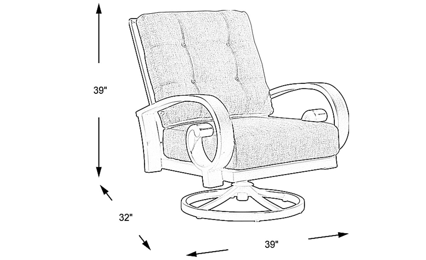 Finish your patio area with the Bermuda Bay swivel club chair. It's made with an aluminum frame in a rust resistant all-weather powder coat finish using a hand applied aged bronze finished UV protected top coat. Performance fabric covered cushions, in a mist color, are colorfast, mold and mildew resistant for durable outdoor use. Thoughtful details include swivel movement, slat back styling, curled arms, button tufted back cushions and French seaming on the seat cushion.