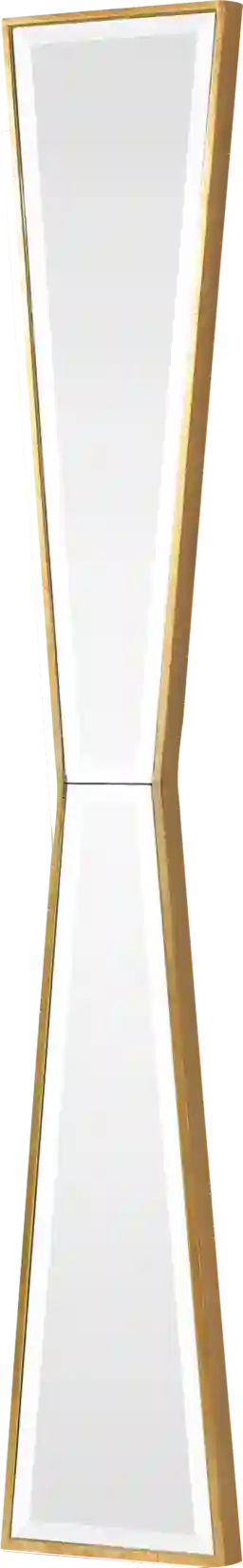 The frame is constructed from solid wood, providing superior structural integrity and resistance to warping compared to synthetic alternatives. It features a hand-finished, lightly antiqued gold leaf. Unlike mass-produced painted finishes, hand-applied gold leaf offers a unique depth and texture that enhances the contemporary "bow tie" design, making it a sophisticated statement piece.