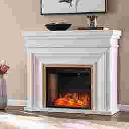 Elevate your living room design with this Berryessa III smart electric fireplace. A spacious mantel beautifully displays framed photos or decor pieces, while the classic molding and gold trim bring a classic feel to your space. Alexa-enabled voice features conveniently allow control from anywhere in the room, working with or without heat for enjoyment all year long. Sleek style comes home when with this white electric fireplace. Customer assembly is required.