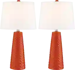 The Berryessa table lamp is a set of two that have an elegantly shaped ceramic body and textured chevron design. These can be added to any room to bring it to life with their fun, vibrant, orange color. Partial assembly may be required.