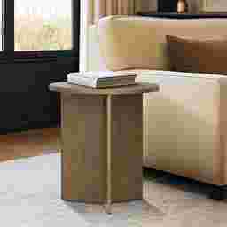 The Berryrover dark brown end table has sculptural lines and a starburst wood veneer top. A versatile accent for small spaces, use as a nightstand, end table, or stylish display piece. Built for everyday function and effortless style. Customer assembly is required.