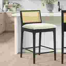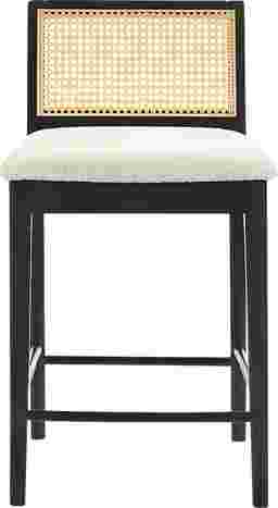 The Berryware counter stool captures the perfect balance of craftsmanship, comfort, and modern design with a natural touch. It stands out through its distinctive woven rattan backrest, paired with a plush white boucle seat, a timeless combination that blends texture, warmth, and contemporary refinement. Designed for modern homes that appreciate natural materials, Berryware offers both visual charm and enduring comfort. Crafted from durable solid natural wood, the frame showcases clean lines and soft edges, giving the stool a balanced silhouette that works effortlessly in kitchens, dining areas, and home bars. Each stool feels inviting yet elevated, suitable for both casual breakfasts and evening gatherings. The seat, upholstered in white boucle performance fabric, delivers a tactile softness while maintaining durability against everyday wear. It's designed to resist stains, moisture, and fading, making it perfect for active households. Beneath the seat, a sturdy support frame ensures s