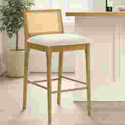 The combination of a woven rattan back and a solid wood frame makes this stool incredibly versatile. It is a perfect fit for "Modern Organic," "Coastal," or "Bohemian" aesthetics. The natural textures of the rattan and wood create an inviting, tactile look that softens the clean lines of modern kitchen architecture.