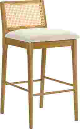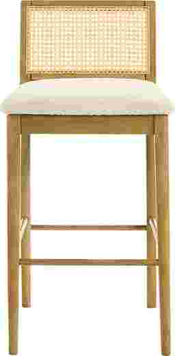 The Berryware barstool captures the perfect balance of craftsmanship, comfort, and modern design with a natural touch. It stands out through its distinctive woven rattan backrest, paired with a plush white boucle seat, a timeless combination that blends texture, warmth, and contemporary refinement. Designed for modern homes that appreciate natural materials, Berryware offers both visual charm and enduring comfort. Crafted from durable solid natural wood, the frame showcases clean lines and soft edges, giving the stool a balanced silhouette that works effortlessly in kitchens, dining areas, and home bars. Each stool feels inviting yet elevated, suitable for both casual breakfasts and evening gatherings. The seat, upholstered in white boucle performance fabric, delivers a tactile softness while maintaining durability against everyday wear. It's designed to resist stains, moisture, and fading, making it perfect for active households. Beneath the seat, a sturdy support frame ensures stabil