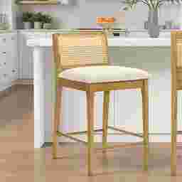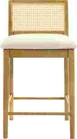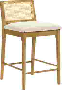 The Berryware counter stool captures the perfect balance of craftsmanship, comfort, and modern design with a natural touch. It stands out through its distinctive woven rattan backrest, paired with a plush white boucle seat, a timeless combination that blends texture, warmth, and contemporary refinement. Designed for modern homes that appreciate natural materials, Berryware offers both visual charm and enduring comfort. Crafted from durable solid natural wood, the frame showcases clean lines and soft edges, giving the stool a balanced silhouette that works effortlessly in kitchens, dining areas, and home bars. Each stool feels inviting yet elevated, suitable for both casual breakfasts and evening gatherings. The seat, upholstered in white boucle performance fabric, delivers a tactile softness while maintaining durability against everyday wear. It's designed to resist stains, moisture, and fading, making it perfect for active households. Beneath the seat, a sturdy support frame ensures s