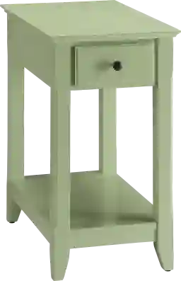 With transitional styling and skinny footprint, the Bertie green chairside table does not take away from living space while still offering open storage as well as a drawer. It is sure to blend in perfectly with your interior's style. Some customer assembly required.