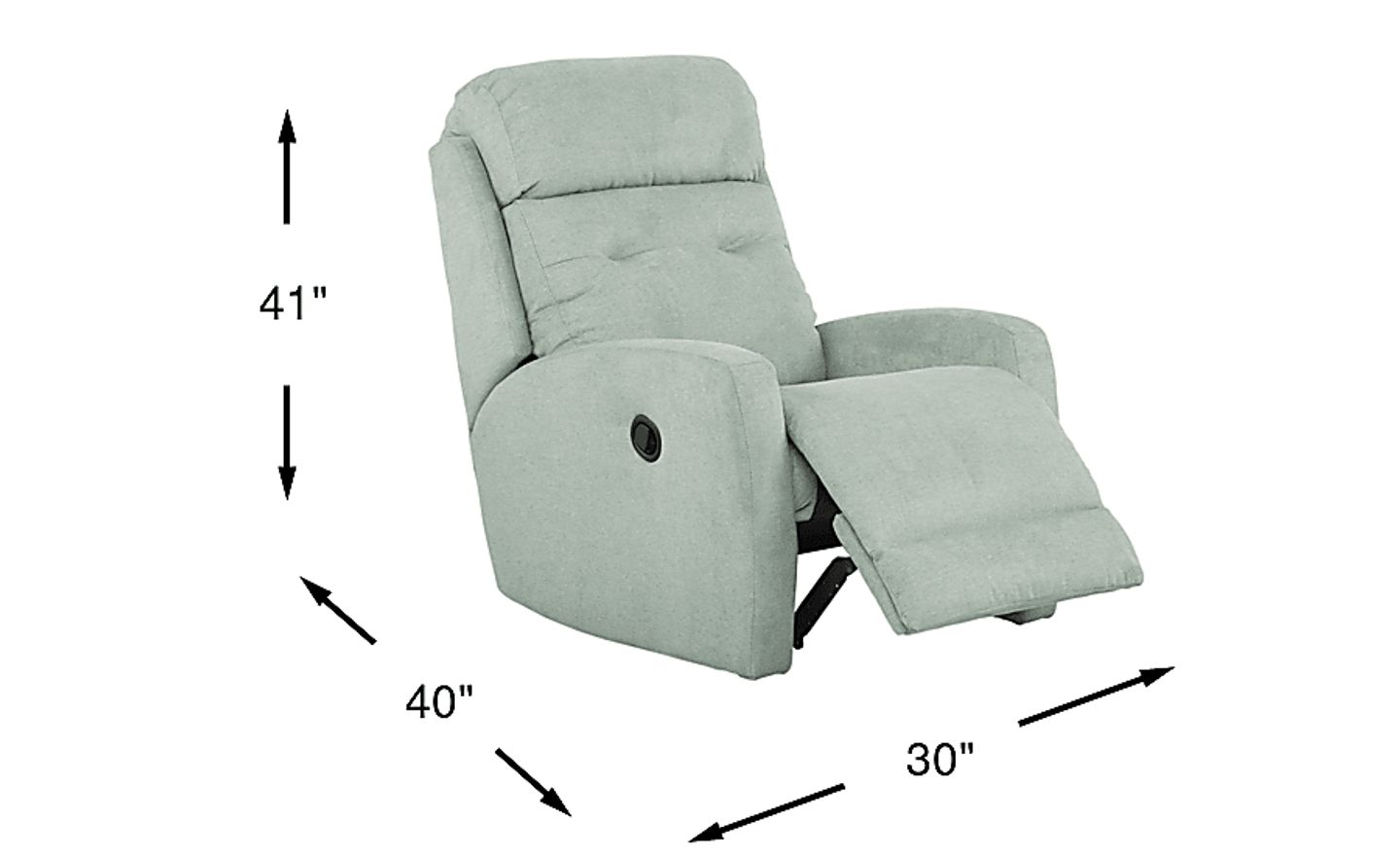 The Bessemer recliner has a clean compact design that's easy to fit in a variety of spaces. Seafoam colored padded Microfiber upholstery is soft, comfortable and durable. Streamlined track arms flow together with subtly shaped wings flanking a double bustle back with two pulls. Pad-over-chaise reclining seating adds perfect support and is a must-have for total relaxation. 96% Polyester, 4% Nylon