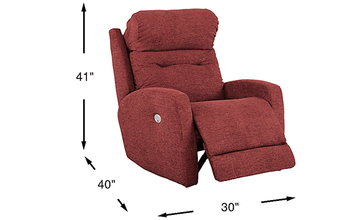 The Bessemer power recliner has a clean compact design that's easy to fit in a variety of spaces. Terracotta colored padded Microfiber upholstery is soft, comfortable and durable. Streamlined track arms flow together with subtly shaped wings flanking a double bustle back with two pulls. Pad-over-chaise reclining seating, a must-have for total relaxation, can be raised and lowered with the touch of a button for customized comfort. 96% Polyester, 4% Nylon
