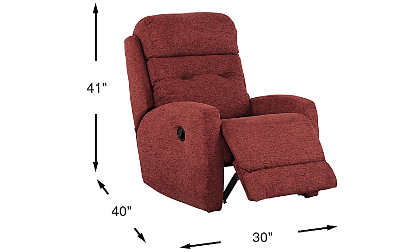 The Bessemer recliner has a clean compact design that's easy to fit in a variety of spaces. Terracotta colored padded Microfiber upholstery is soft, comfortable and durable. Streamlined track arms flow together with subtly shaped wings flanking a double bustle back with two pulls. Pad-over-chaise reclining seating adds perfect support and is a must-have for total relaxation. 96% Polyester, 4% Nylon