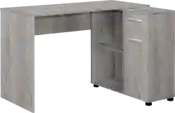With a generous worksurface and built-in storage, the Bestrom gray desk is ideal for students or home offices with limited space. The main desktop panel overlaps the storage unit on the right to create a second, slightly lower worksurface. The convenient storage unit provides space to neatly organize reference books and school supplies. It features 2 cubbies with 1 fixed shelf panel, 1 storage drawer, and 1 cabinet, both of which have finished interiors and silver handles. Finished on all sides in an industrial gray wood-look laminate, this space-saving desk is intended for placement in a corner, but can be positioned anywhere in a bedroom, dorm room, or home office. Customer assembly is required.