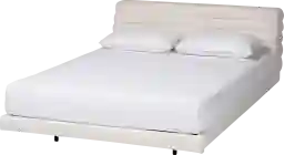 Develop your bedroom into a serene hideaway with the lovely Betaiy cream king bed. This modern piece consists of a sturdy wood frame padded with plush foam and upholstered in sumptuous boucle fabric. The floating design of the base creates an enchanting display while the tufted headboard lends a chic bedroom backdrop rich with crisp geometric flair. The Betaiy utilizes wood slats for mattress support, eliminating the need for a box spring. Customer assembly is required.