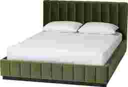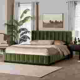 Incorporate an aura of retro flair to your bedroom with the beautifully designed Betany green queen bed. This mid-century modern inspired piece consists of a sturdy wood frame padded with plush foam and upholstered in lavish velvet fabric. Its distinguished headboard and pronounced railings utilize a channel tufted design that exhibits geometric refinement while maintaining a plush cozy embrace. The Betany utilizes wood slats for mattress support, eliminating the need for a box spring. Its covered baseboard creates a crisp, tapered silhouette, making the Betany a delightful bedroom centerpiece. Customer assembly is required.