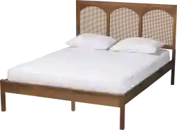 Relax and unwind in the peaceful aura of classic craftsmanship with the lovely Bethwayne brown queen platform bed. This traditional piece consists of a sturdy wood frame embellished with woven rattan. Its broad headboard features rich geometry and visual texture for an impressive yet inviting bedroom backdrop. The Bethwayne utilizes wood slats for mattress support, eliminating the need for a box spring. Featuring spacious room for storage underneath the frame, the Bethwayne is a fantastic bedroom centerpiece. Customer assembly is required.