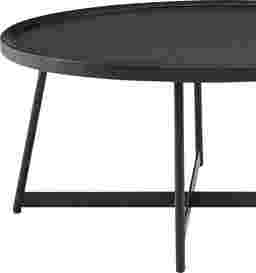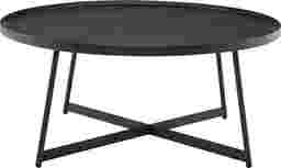 The Beulahland black cocktail table is both perfectly symmetrical, and distinguished. With a black stained ash veneer top, solid edges, and a black steel base, let this coffee table catch the eye of any wandering guest. Prominent and bold, while also graceful.