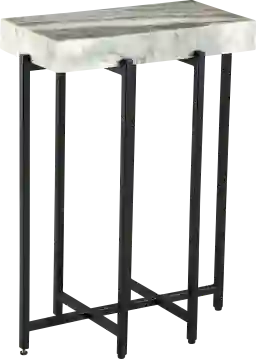 This table is an exceptional solution for space-conscious urban living. With a slim depth of only 10 inches, it provides a functional surface for drinks, plants, or decorative accents without obstructing traffic flow in narrow entryways or compact living areas. Its rectangular shape and open black metal frame create a "leggy" look that keeps your room feeling open and airy rather than cluttered.