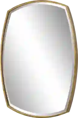 This shapely Beverlee mirror features an iron frame finished in a heavily antiqued gold with outer curves for an updated appeal to the traditional rectangle. Mirror has a 1 bevel. May be hung horizontal or vertical. Customer assembly is required.