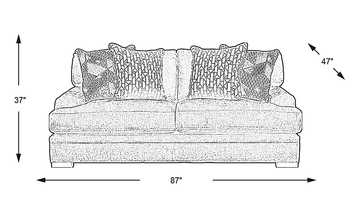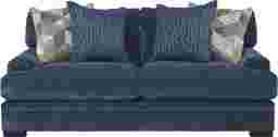 Perfect for smaller spaces, the Beverlywood apartment sofa is unbelievably soft and stylish. Upholstered with velvet-like fabric in navy, this piece features low-profile track arms for a relaxed transitional look. Deep seating, reversible cushions and plush Feather Blend seats combine for a luxurious arrangement. Included accent pillows offer a variety of coordinating patterns and textures. 100% Polyester