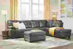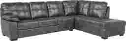 Contemporary seating accommodating up to five adults, the Bexley Square sectional is equal parts comfortable and stylish. Upholstered in slate gray innovative polyester blend fabric, this plush sectional features coordinating top stitching and subtle tufting detailing on the attached seat and back cushions, plus a luxurious pillowtop arm. 100% Polyester.