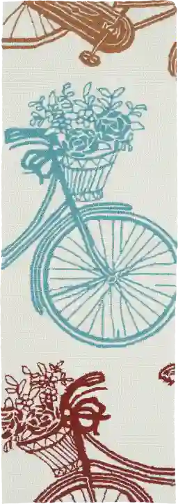 To keep the ivory and multi-colored bicycle pattern looking its best, we recommend regular vacuuming or shaking the rug out to remove loose dirt and debris. For spills, our care guide suggests spot cleaning with a mild detergent and water. Because it is crafted from 100% polypropylene, you can also hose the rug off outdoors for a deeper clean; simply ensure it dries completely in the sun to maintain a fresh, clean surface.