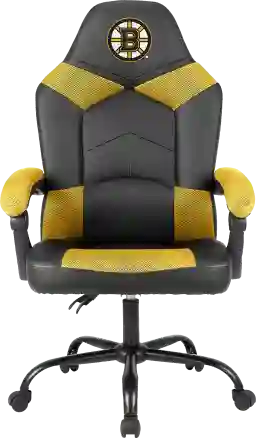 Enjoy hours of comfort whether working or gaming with your new Big Team Boston Bruins oversized office chair. Big seat and adjustable back height are exactly what you have been looking for. Unique to this is chair is a special pouch on the back to store your I-pad, controller and headphones. Steel base will last forever and gas lift system will allow you to adjust your height easily. Colorful team design with direct embroidered logos of your favorite team. Easy to assemble. Weight capacity 275 pounds. Customer assembly required.