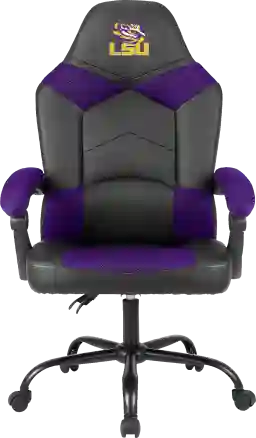 Enjoy hours of comfort whether working or gaming with your new Big Team Louisiana State University oversized office chair. Big seat and adjustable back height are exactly what you have been looking for. Unique to this is chair is a special pouch on the back to store your I-pad, controller and headphones. Steel base will last forever and gas lift system will allow you to adjust your height easily. Colorful team design with direct embroidered logos of your favorite team. Easy to assemble. Weight capacity 275 pounds. Customer assembly required.