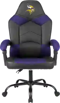 Enjoy hours of comfort whether working or gaming with your new Big Team Minnesota Vikings oversized office chair. Big seat and adjustable back height are exactly what you have been looking for. Unique to this is chair is a special pouch on the back to store your I-pad, controller and headphones. Steel base will last forever and gas lift system will allow you to adjust your height easily. Colorful team design with direct embroidered logos of your favorite team. Easy to assemble. Weight capacity 275 pounds. Customer assembly required.
