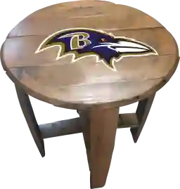 Liven up your living room or fan cave with this officially licensed Baltimore Ravens custom made oak barrel end table. Made from an authentic Kentucky oak charred whiskey barrel, this rustic-style table is one of a kind and looks great in any room. The team logo is applied by injecting UV resistant ink into the oak and then sealing. The table measures 21 Inches in diameter and is 24 inches high. This product is officially licensed by the NFL and is made in the USA. Customer assembly required.