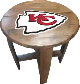 Liven up your living room or fan cave with this officially licensed Kansas City Chiefs custom made oak barrel end table. Made from an authentic Kentucky oak charred whiskey barrel, this rustic-style table is one of a kind and looks great in any room. The team logo is applied by injecting UV resistant ink into the oak and then sealing. The table measures 21 Inches in diameter and is 24 inches high. This product is officially licensed by the NFL and is made in the USA. Customer assembly required.