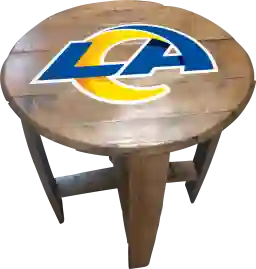 Liven up your living room or fan cave with this officially licensed Los Angeles Rams custom made oak barrel end table. Made from an authentic Kentucky oak charred whiskey barrel, this rustic-style table is one of a kind and looks great in any room. The team logo is applied by injecting UV resistant ink into the oak and then sealing. The table measures 21 Inches in diameter and is 24 inches high. This product is officially licensed by the NFL and is made in the USA. Customer assembly required.