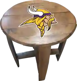 Liven up your living room or fan cave with this officially licensed Minnesota Vikings custom made oak barrel end table. Made from an authentic Kentucky oak charred whiskey barrel, this rustic-style table is one of a kind and looks great in any room. The team logo is applied by injecting UV resistant ink into the oak and then sealing. The table measures 21 Inches in diameter and is 24 inches high. This product is officially licensed by the NFL and is made in the USA. Customer assembly required.