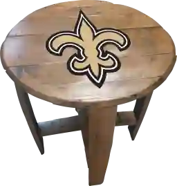 Liven up your living room or fan cave with this officially licensed New Orleans Saints custom made oak barrel end table. Made from an authentic Kentucky oak charred whiskey barrel, this rustic-style table is one of a kind and looks great in any room. The team logo is applied by injecting UV resistant ink into the oak and then sealing. The table measures 21 Inches in diameter and is 24 inches high. This product is officially licensed by the NFL and is made in the USA. Customer assembly required.