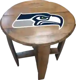 Liven up your living room or fan cave with this officially licensed Seattle Seahawks custom made oak barrel end table. Made from an authentic Kentucky oak charred whiskey barrel, this rustic-style table is one of a kind and looks great in any room. The team logo is applied by injecting UV resistant ink into the oak and then sealing. The table measures 21 Inches in diameter and is 24 inches high. This product is officially licensed by the NFL and is made in the USA. Customer assembly required.