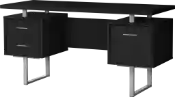 Feel like a boss in your home office when you sit down to work at this mid-size Billingsly computer desk with 3 storage drawers. The thick-panel floating desktop provides generous room for a laptop and writing materials, and allows you to use the tops of the drawer units as extra surfaces. Finished in the same black laminate as the desktop, 2 small drawers and 1 large drawer with a bar for hanging files offer space for items you want to keep off the work surface. For flexibility, the drawer units are reversible and can be installed on either side according to your preference. Supporting the desk are metal legs in a silver finish with a modern, stylish U shape. Customer assembly is required.