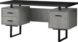 Feel like a boss in your home office when you sit down to work at this mid-size Billingsly computer desk with 3 storage drawers. The thick-panel floating desktop in a black finish provides generous room for a laptop and writing materials, and allows you to use the tops of the drawer units as extra surfaces. Finished in a gray concrete-look laminate that contrasts the desktop, 2 small drawers and 1 large drawer with a bar for hanging files offer space for items you want to keep off the work surface. For flexibility, the drawer units are reversible and can be installed on either side according to your preference. Supporting the desk are metal legs in a black finish with a modern, stylish U shape. Customer assembly is required.