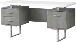 Feel like a boss in your home office when you sit down to work at this mid-size Billingsly computer desk with 3 storage drawers. The thick-panel floating desktop provides generous room for a laptop and writing materials, and allows you to use the tops of the drawer units as extra surfaces. Finished in a grey concrete-look laminate that contrasts the white desktop, 2 small drawers and 1 large drawer with a bar for hanging files offer space for items you want to keep off the work surface. For flexibility, the drawer units are reversible and can be installed on either side according to your preference. Supporting the desk are metal legs in a silver finish with a modern, stylish U shape. Customer assembly is required.