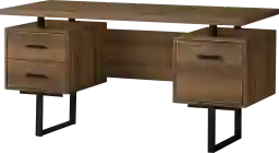 Feel like a boss in your home office when you sit down to work at this mid-size Billingsly computer desk with 3 storage drawers. The thick-panel floating desktop provides generous room for a laptop and writing materials, and allows you to use the tops of the drawer units as extra surfaces. Finished in the same walnut wood-look laminate as the desktop, 2 small drawers and 1 large drawer with a bar for hanging files offer space for items you want to keep off the work surface. For flexibility, the drawer units are reversible and can be installed on either side according to your preference. Supporting the desk are metal legs in a black finish with a modern, stylish U shape. Customer assembly is required.