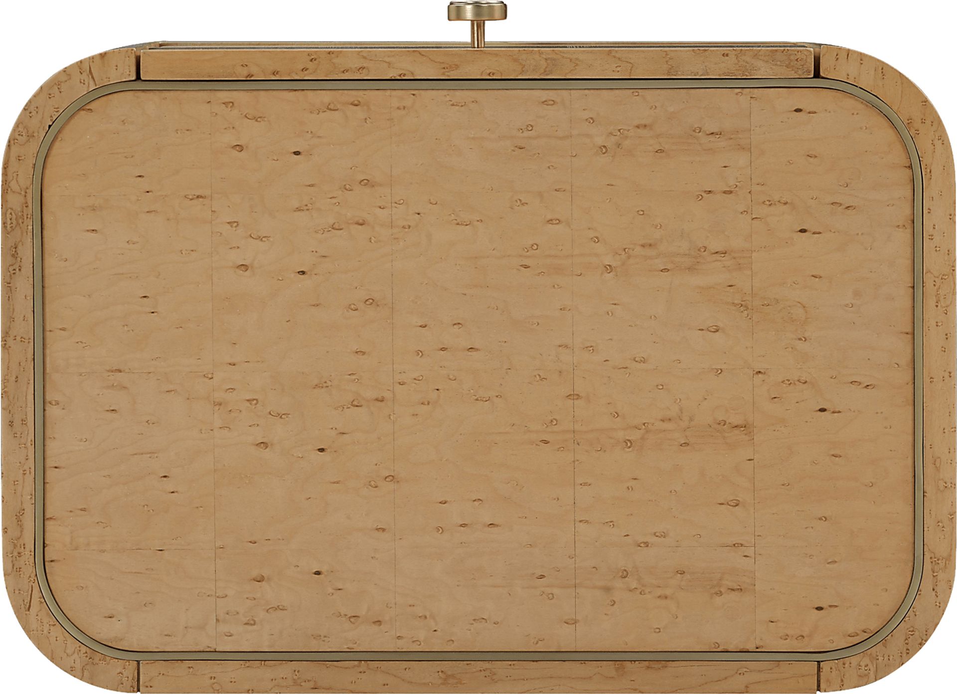 Introducing the Bilodeau brown nightstand, a captivating blend of timeless style and practicality. The variations in the wood make each nightstand totally unique and special. Its brass inlay and matching knobs add a touch of refinement, while the thoughtfully designed proportions provide ample storage space with three drawers. Elevate your bedroom with this charming and functional piece of furniture.