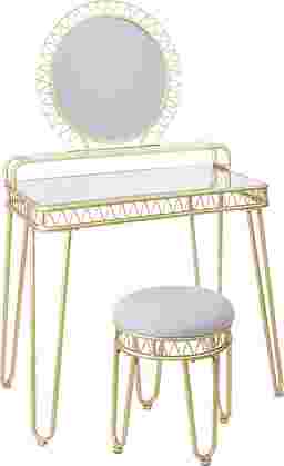 Elevate the look of your bedroom or bathroom by adding a detail-focused statement piece such as our Binford vanity set. The metal frame will reflect light, making your room look lighter and more luxurious. Featuring a mid-century inspired design, an attached round mirror and two shelves for a functional and eye catching look. The set includes a round upholstered stool for a tailored, sophisticated look. This stylish vanity and bench set will add an element of glamour and functionality to your bathroom or bedroom. Crafted of metal, tempered glass, mirror, foam and fabric. Customer assembly is required. Customer assembly is required.