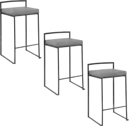 The simple elegance of the original design Birdlake III Gray Counter Height Stool, Set of 3 belies its astonishing comfort. Lightweight thin lines create a simplistic fully assembled frame and backrest to support a thick padded look of leather upholstered seat cushion. A stackable design for easy storage makes this a great stool for entertaining. With its simple stylishness, the Birdlake is sure to match any decor. Available in many color combinations, choose the look that best fits your dining space. Customer assembly required.