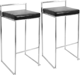 The simple elegance of the original design Birdlake IV Black Barstool, Set of 2 belies its astonishing comfort. Lightweight thin lines create a simplistic fully assembled frame and backrest to support a thick padded faux leather seat cushion. A stackable design for easy storage makes this a great stool for entertaining. With its simple stylishness, the Birdlake is sure to match any decor. Available in many color combinations, choose the look that best fits your dining space. Customer assembly required.