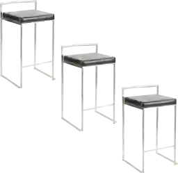 The simple elegance of the original design Birdlake IV Black Counter Height Stool, Set of 3 belies its astonishing comfort. Lightweight thin lines create a simplistic fully assembled frame and backrest to support a thick padded look of leather upholstered seat cushion. A stackable design for easy storage makes this a great stool for entertaining. With its simple stylishness, the Birdlake is sure to match any decor. Available in many color combinations, choose the look that best fits your dining space. Customer assembly required.
