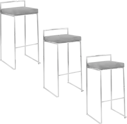 The simple elegance of the original design Birdlake IV Gray Barstool, Set of 3 belies its astonishing comfort. Lightweight thin lines create a simplistic fully assembled frame and backrest to support a thick padded faux leather seat cushion. A stackable design for easy storage makes this a great stool for entertaining. With its simple stylishness, the Birdlake is sure to match any decor. Available in many color combinations, choose the look that best fits your dining space. Customer assembly required.