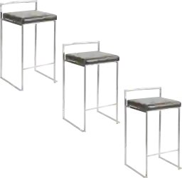 The simple elegance of the original design Birdlake IV Gray Counter Height Stool, Set of 3 belies its astonishing comfort. Lightweight thin lines create a simplistic fully assembled frame and backrest to support a thick padded look of leather upholstered seat cushion. A stackable design for easy storage makes this a great stool for entertaining. With its simple stylishness, the Birdlake is sure to match any decor. Available in many color combinations, choose the look that best fits your dining space. Customer assembly required.