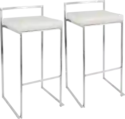 The simple elegance of the original design Birdlake IV White Barstool, Set of 2 belies its astonishing comfort. Lightweight thin lines create a simplistic fully assembled frame and backrest to support a thick padded faux leather seat cushion. A stackable design for easy storage makes this a great stool for entertaining. With its simple stylishness, the Birdlake is sure to match any decor. Available in many color combinations, choose the look that best fits your dining space. Customer assembly required.
