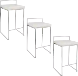 The simple elegance of the original design Birdlake IV White Counter Height Stool, Set of 3 belies its astonishing comfort. Lightweight thin lines create a simplistic fully assembled frame and backrest to support a thick padded look of leather upholstered seat cushion. A stackable design for easy storage makes this a great stool for entertaining. With its simple stylishness, the Birdlake is sure to match any decor. Available in many color combinations, choose the look that best fits your dining space. Customer assembly required.